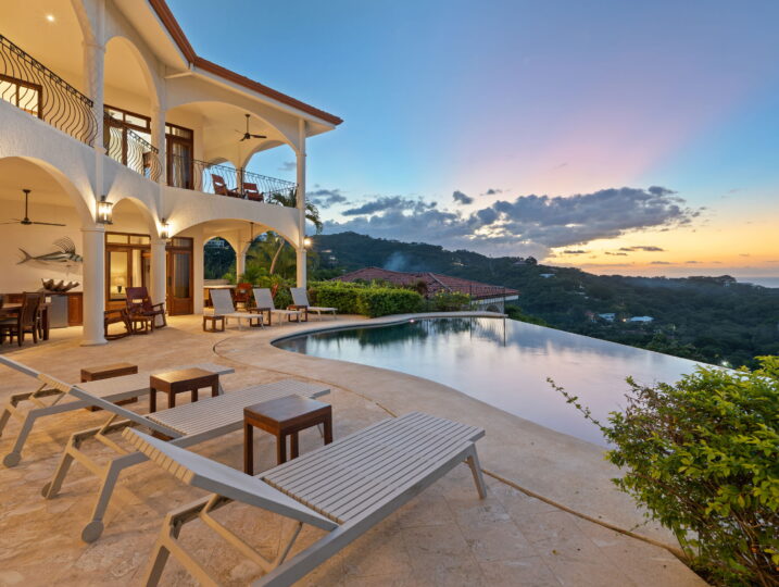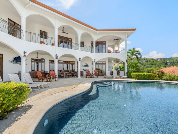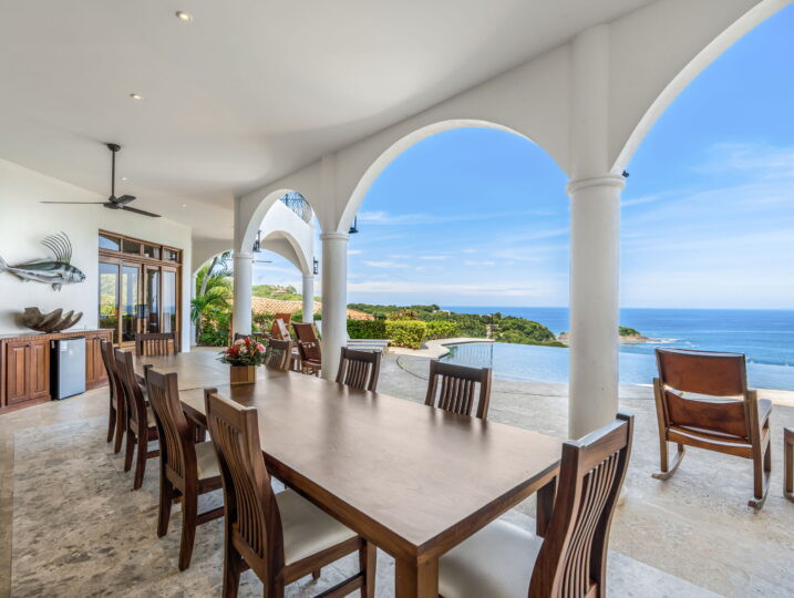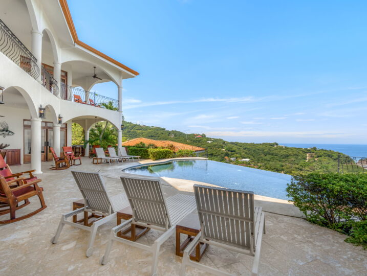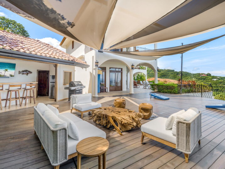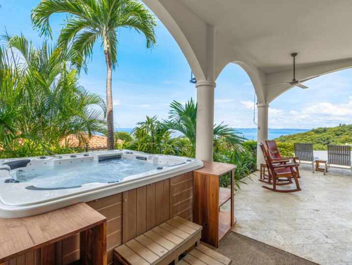 Villa Del Mar is centrally located to many beautiful attractions in Guanacaste, Costa Rica, and a short drive from Liberia International Airport (LIR). Surrounded by lush landscapes and panoramic views of the Pacific Ocean, Villa Del Mar creates a serene experience filled with relaxation. Equipped with six spacious bedrooms and en-suite bathrooms, Villa Del Mar is the ultimate travel destination for up to 16 guests. This property boasts various outdoor areas such as our fully stocked outside bar, spacious deck, hot tub, infinity pool, and first and second-story seating areas.